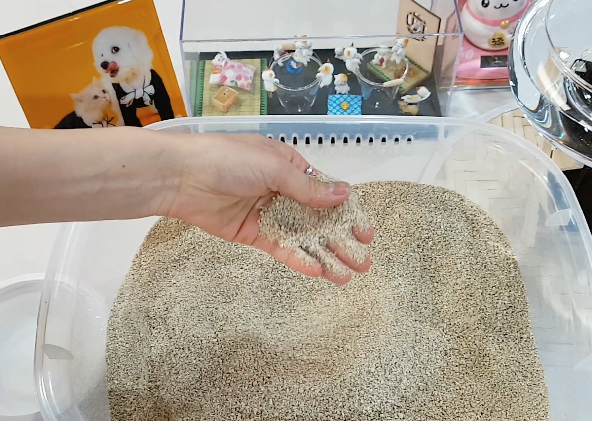 먼지를 줄이려면 모래를 사용하시기 전에 야외에서 바람에 한번 털어서 쓰시는 방법도 있다고 합니다.