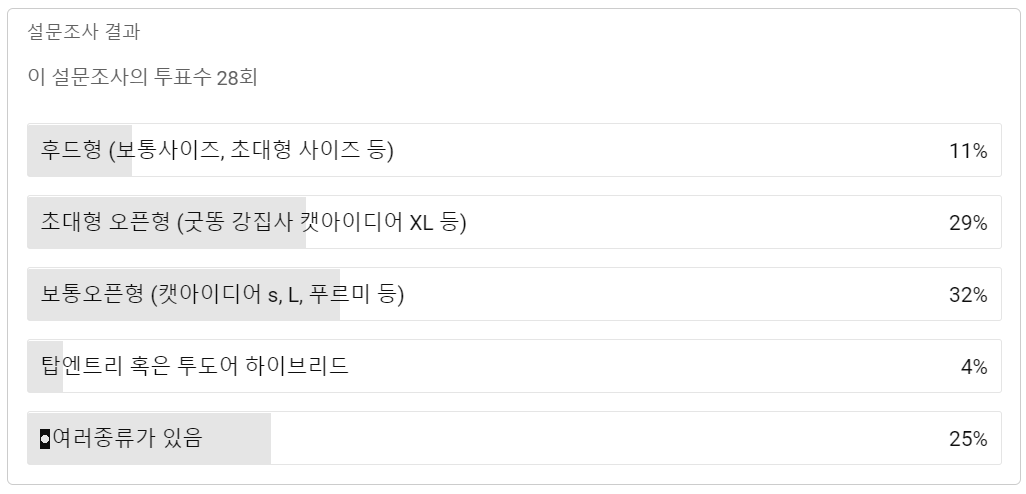 유튜브 젤리펫( https://www.youtube.com/jellypet )에서 설문조사를 해 보았습니다.